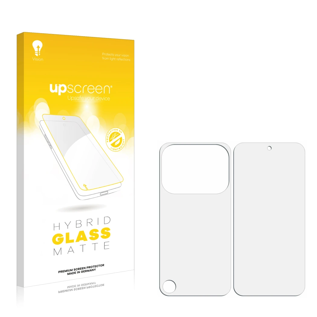 upscreen Hybrid Glass Matte Premium glass film offers extra strong screen protection for your Nothing Phone (4a) Pro (Front+Back). It provides optimal protection against scratches and is characterised by its special lightness, flexibility and its comfortable anti-reflective matt coating.
